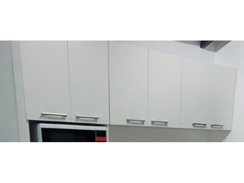 Este mueble superior de cocina es una solución práctica y estética para organizar y almacenar la vajilla y otros utensilios de cocina. Su diseño sencillo y atemporal lo hace versátil y adaptable a diferentes estilos de cocina.