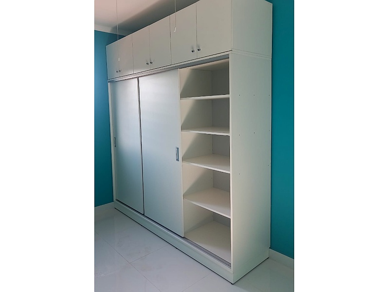 Este armario blanco ofrece un diseño moderno y luminoso, ideal para cualquier habitación. Con un acabado en blanco brillante, proporciona una apariencia fresca y versátil que se adapta a diversos estilos decorativos. Su estructura espaciosa y bien organizada permite un almacenamiento eficiente de ropa y accesorios, combinando funcionalidad con un estilo elegante.