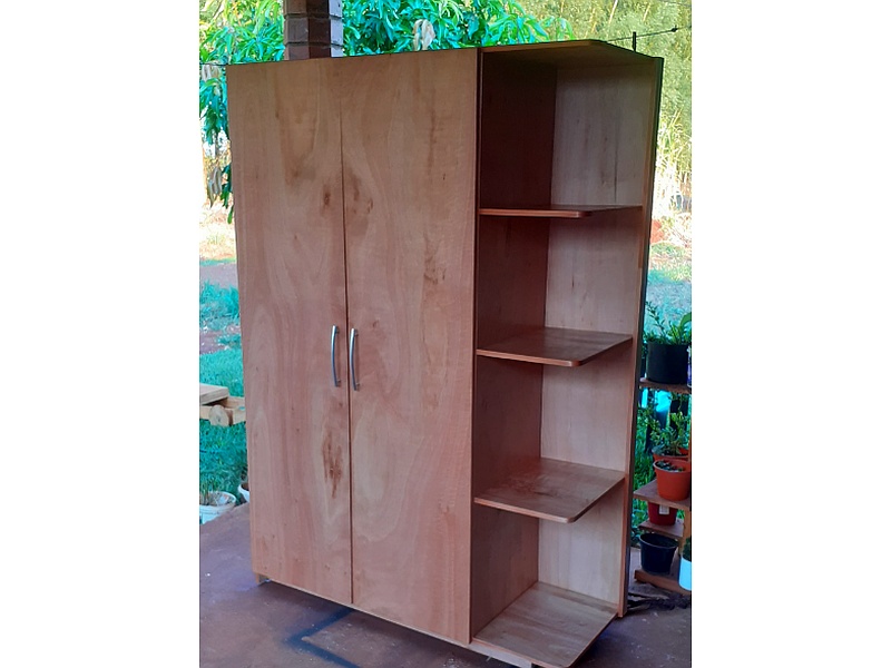 Armario de madera con un acabado elegante, ideal para complementar la decoración de cualquier habitación mientras proporciona un amplio espacio para organizar.