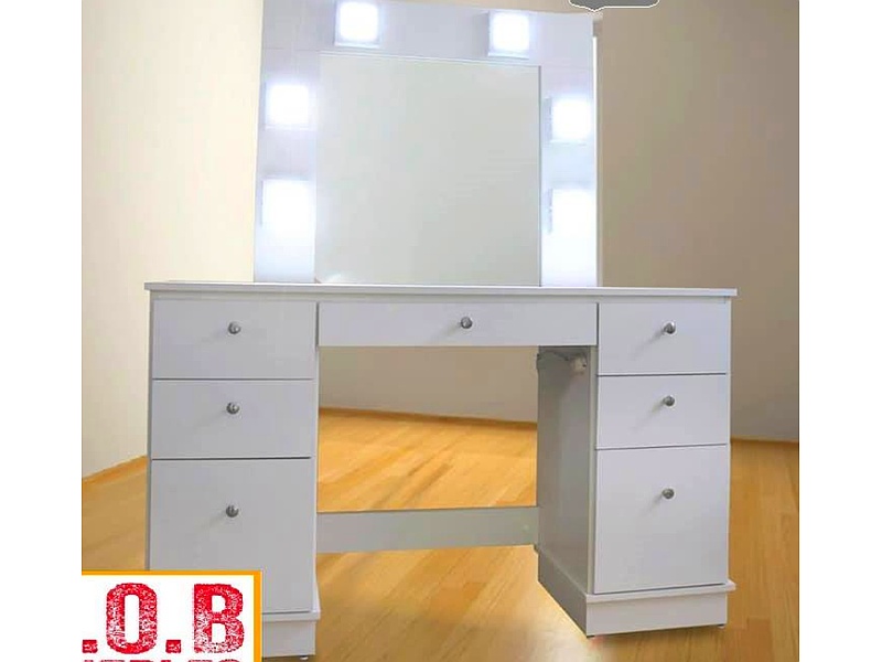 El tocador de Hollywood de Carpintería JOB está inspirado en el glamur del estilo retro. Este mueble suele incluir un espejo grande rodeado de luces LED o bombillas, emulando el diseño de los tocadores de las estrellas de cine. Hecho de madera, el tocador puede tener varios cajones para organizar maquillaje y accesorios, y su acabado puede ser en tonos brillantes o barniz que acentúa la belleza natural de la madera.