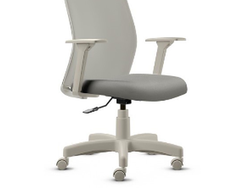 Silla para Oficina color Gris. Base gris de 5 radios con ruedas dobles. Respaldo en malla gris. No reclina. Apoyabrazos fijos en poliamida color gris. Regulacion de altura de asiento por pistón a gas.