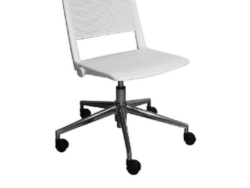 Silla de diseño con carcazas plásticas italianas, base a gas. estrella de aluminio pulido, cilindro cromado, 5 ruedas dobles.
