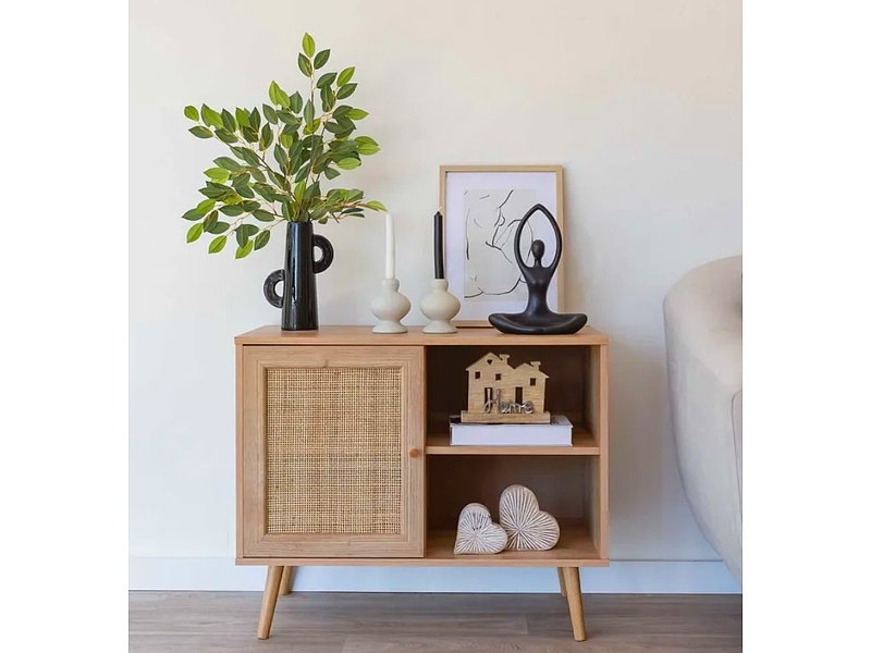 Aparador amplio hecho de madera rústica, con puertas y cajones que ofrecen un gran espacio de almacenamiento. Su diseño combina funcionalidad y un estilo campestre que aporta calidez al hogar.