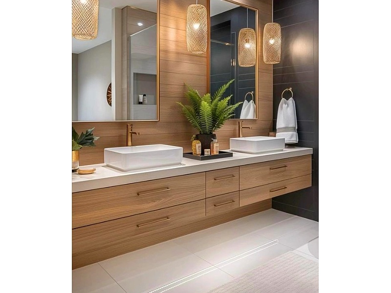 Mueble para baño en melamina imitación madera con tirador.