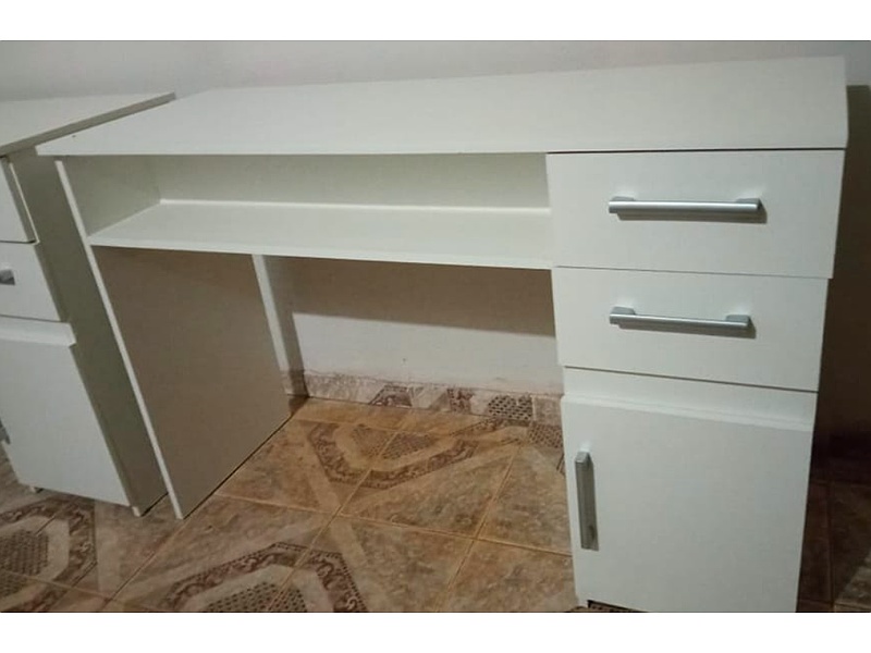 Este escritorio blanco presenta un diseño elegante y contemporáneo, ideal para añadir un toque de frescura a cualquier oficina o área de estudio. Este mueble cuenta con una superficie amplia y opciones de almacenamiento prácticas, proporcionando tanto funcionalidad como un acabado luminoso y moderno. Este escritorio es perfecto para quienes buscan una solución estilizada y bien diseñada para su espacio de trabajo.