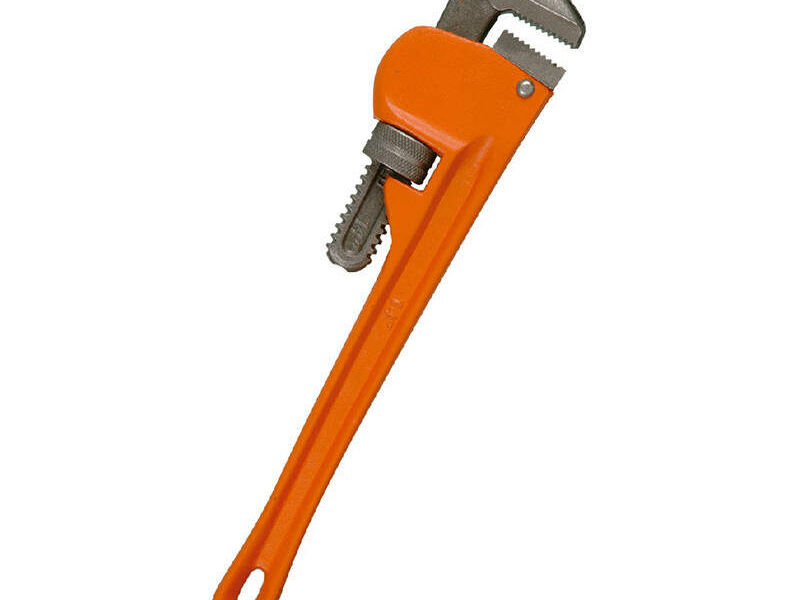Herramienta manual que se utiliza para apretar o aflojar tuercas y pernos en tuberías. Está compuesta por dos partes principales: la cabeza y el mango. La cabeza tiene una forma de "U" y tiene dos mordazas que se utilizan para sujetar la tuerca o el perno. El mango está hecho de madera o metal y se utiliza para girar la llave para caño.