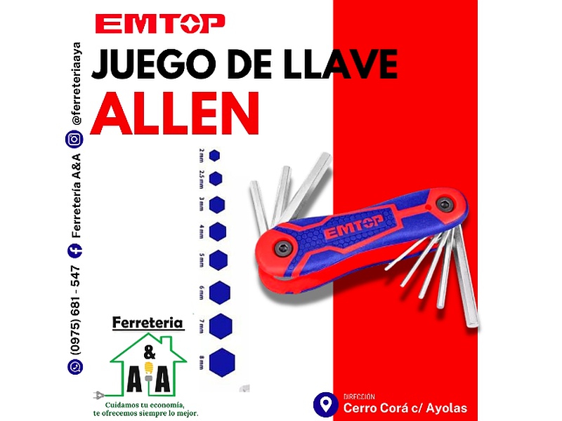 Un juego de llaves hexagonales, también conocido como llaves Allen, es un conjunto de herramientas manuales diseñadas para apretar o aflojar tornillos y pernos con cabezas de forma hexagonal interna. Estas llaves suelen tener una forma de "L" que proporciona un apalancamiento adicional al aplicar torque. Los juegos de llaves hexagonales vienen en diferentes tamaños, que se adaptan a las medidas estándar (métricas o imperiales) de los tornillos y pernos. Son ampliamente utilizadas en ensamblaje de muebles, bicicletas, maquinaria y electrónica, ya que su diseño compacto permite acceder a espacios reducidos y aplicar fuerza con precisión.
