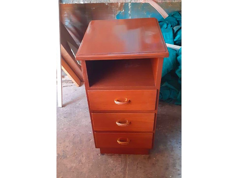 Pequeño mueble perfecto para colocar lámparas y objetos personales al lado de la cama.