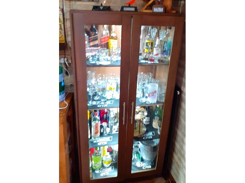 Vitrina con puertas de cristal, ideal para exhibir vajillas y objetos especiales.