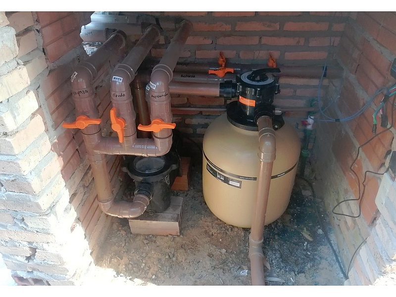 Instalación de filtro para piscina.