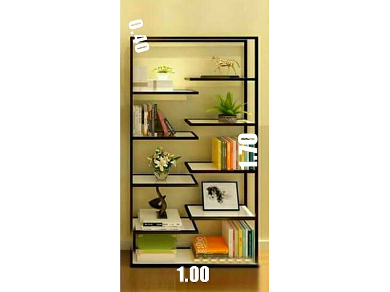 Estantería de hierro y madera de cedro con un diseño robusto e industrial, ideal para exhibir libros o decoraciones en cualquier espacio.