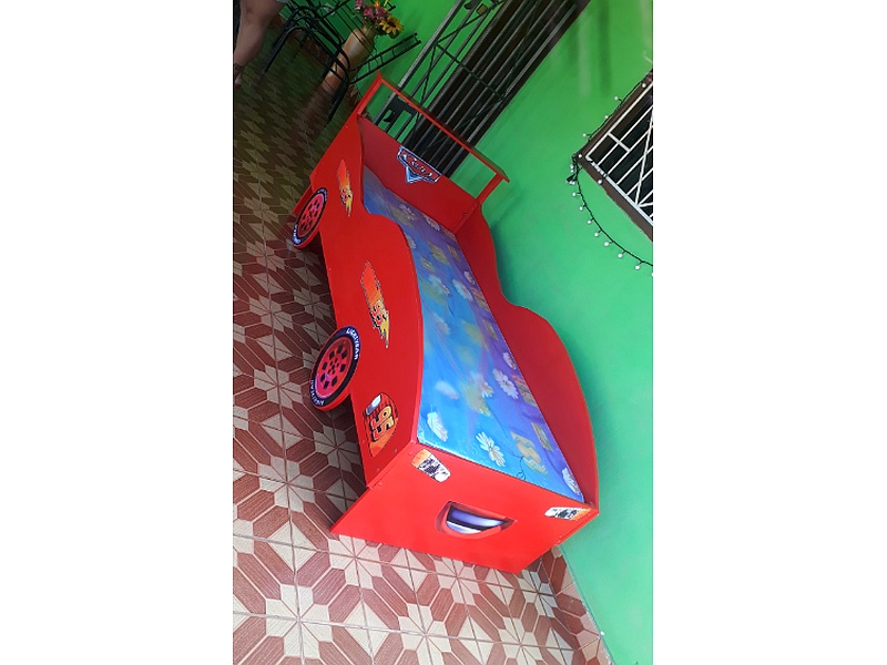Cama temática en forma de carro, ideal para los más pequeños, brindando diversión y comodidad a la hora de dormir.