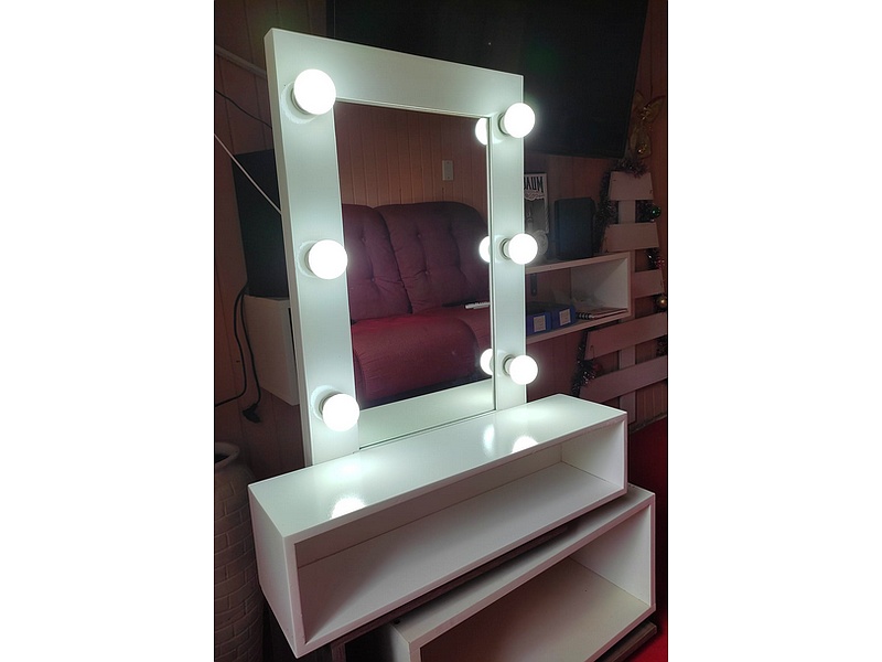 Espejo con luces en color blanco.
