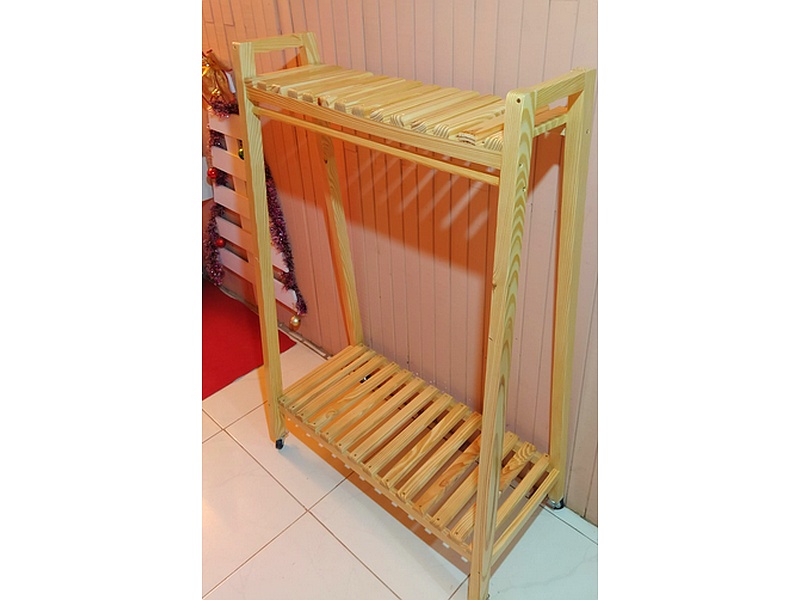 Perchero de pie elaborado en madera natural.