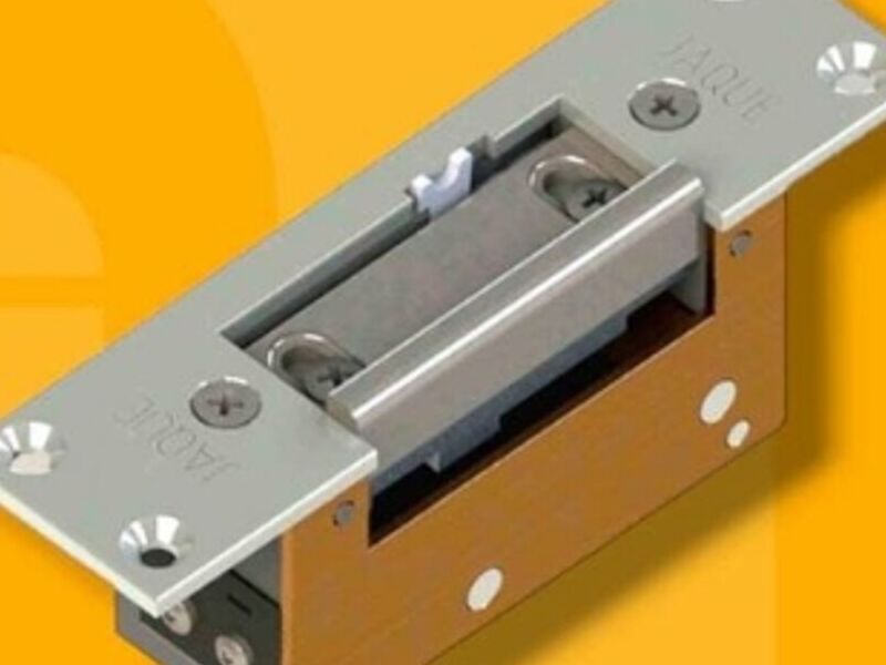 Cerradura electromagnética que actúa cuando recibe un comando desde un control de acceso, transmisor, portero, etc.