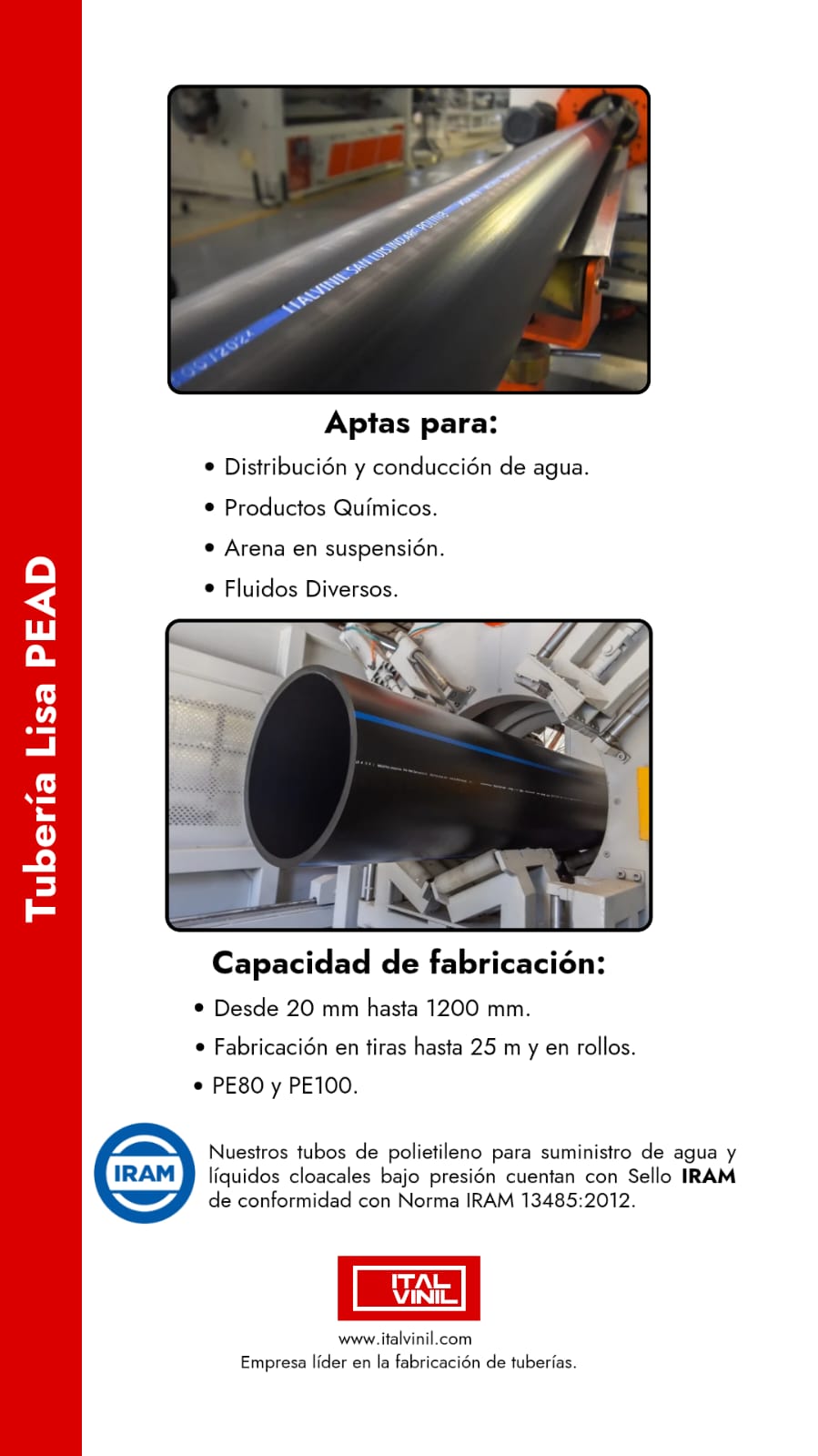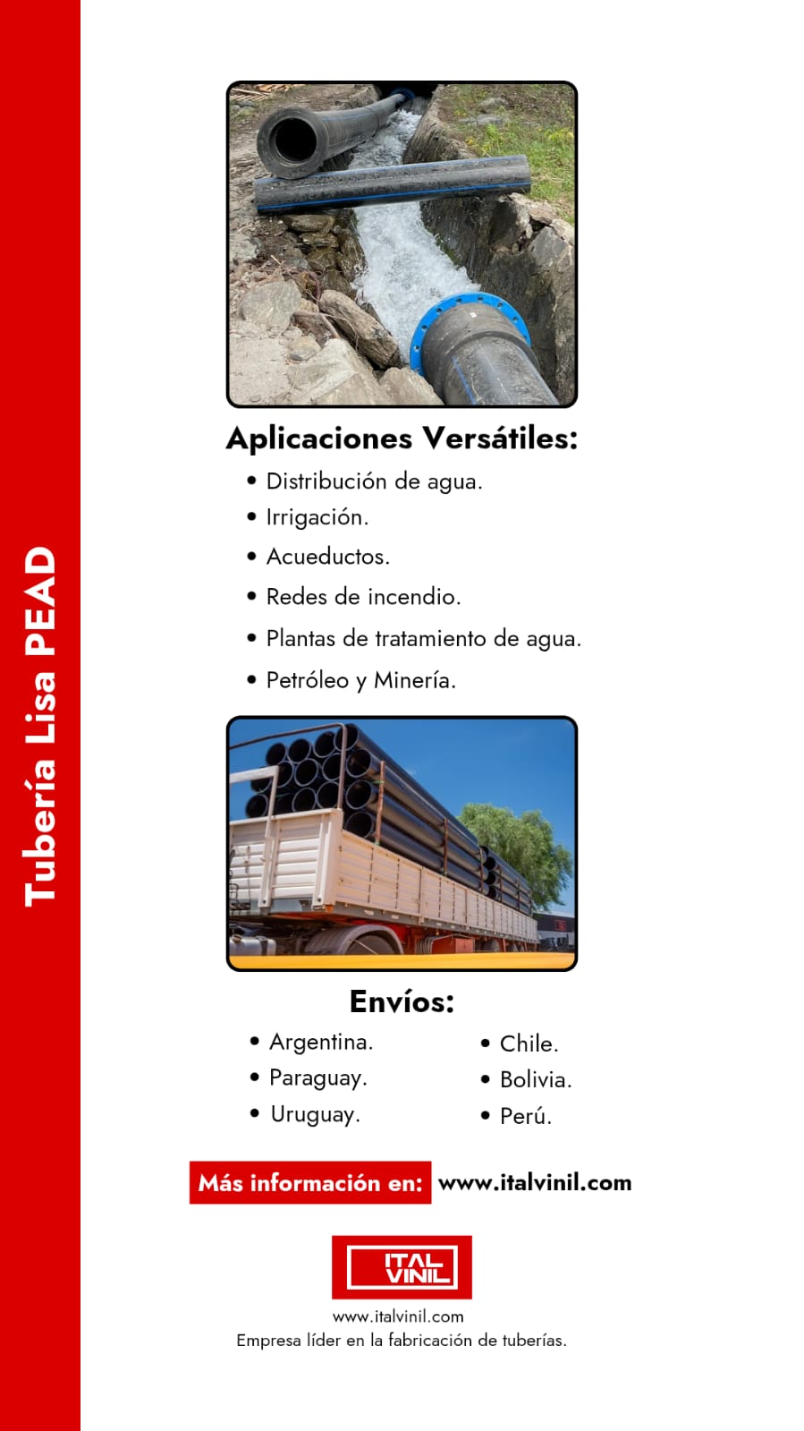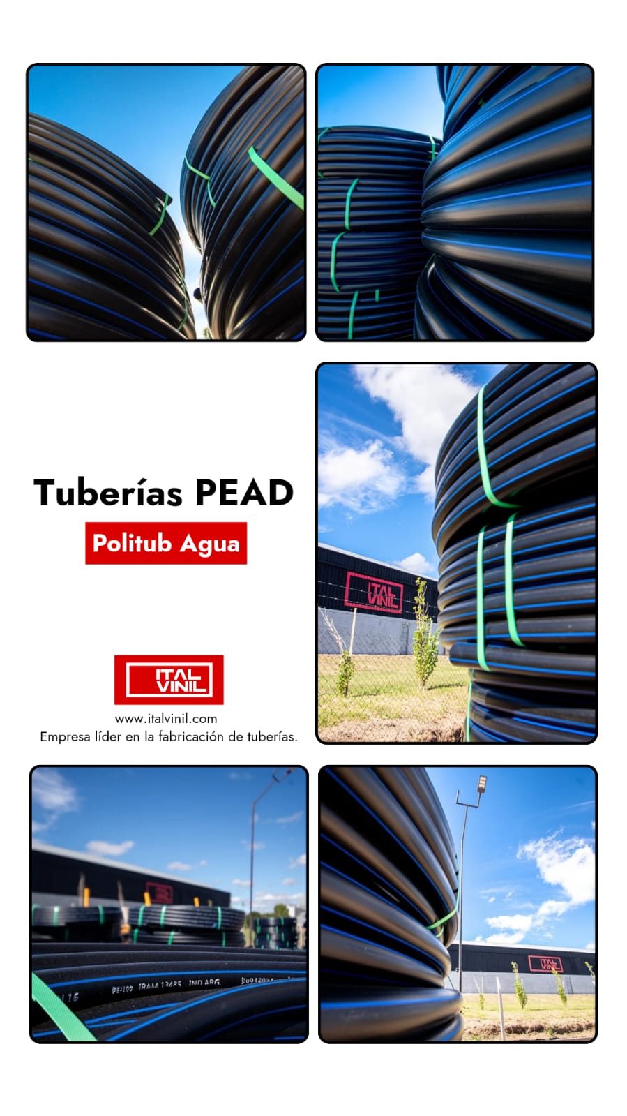Tuberías de polietileno de alta densidad PEAD para utilización en proyectos de riego, provisión de agua potable, plantas de tratamiento, y mas;