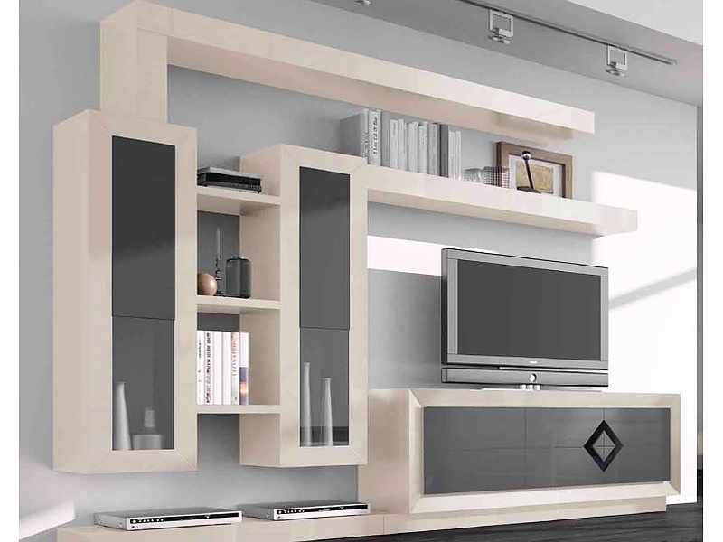 Mueble diseñado para organizar dispositivos de entretenimiento, con un estilo moderno y funcional.