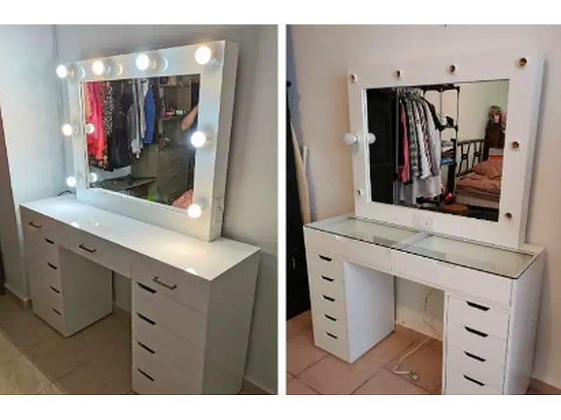 Un tocador es un mueble que combina un espejo con una superficie plana y cajones, diseñado para almacenar cosméticos, joyas y otros artículos personales. Suele estar ubicado en dormitorios o vestidores y puede estar hecho de madera, metal o materiales sintéticos. Los tocadores a menudo tienen un diseño elegante y pueden incluir detalles decorativos como patas talladas o acabados ornamentales.