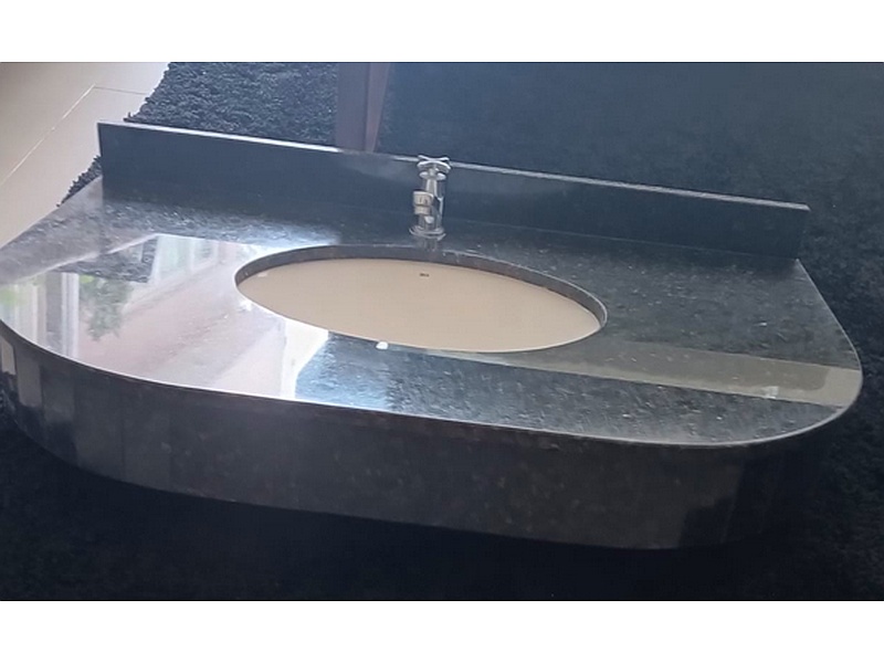 Encimera en granito azul perla.
