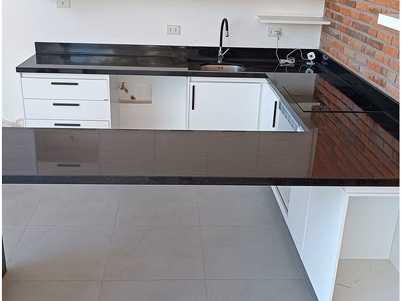 Mesada de cocina en mármol negro.