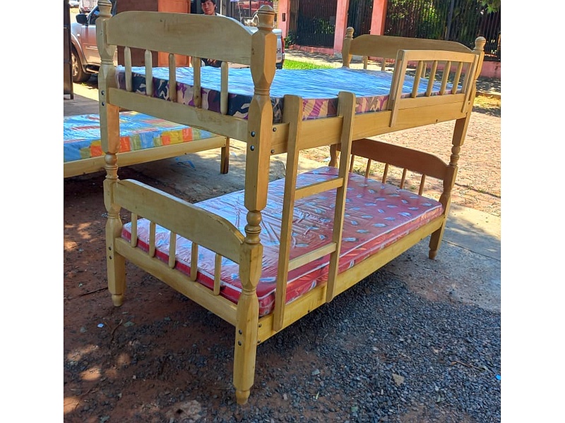 Cama litera fabricada en madera natural.