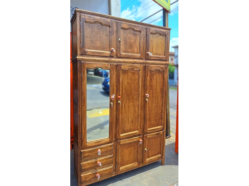 Ropero tres cuerpos fabricado en madera color cedro.