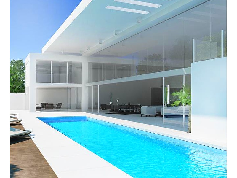 Esta elegante casa blanca destaca por su diseño moderno y abierto, que integra perfectamente los espacios interiores y exteriores. Con amplios ventanales y una disposición fluida, invita a disfrutar de la luz natural y vistas al jardín. La piscina se convierte en el punto focal del exterior, ofreciendo un ambiente relajante ideal para el ocio y el entretenimiento.