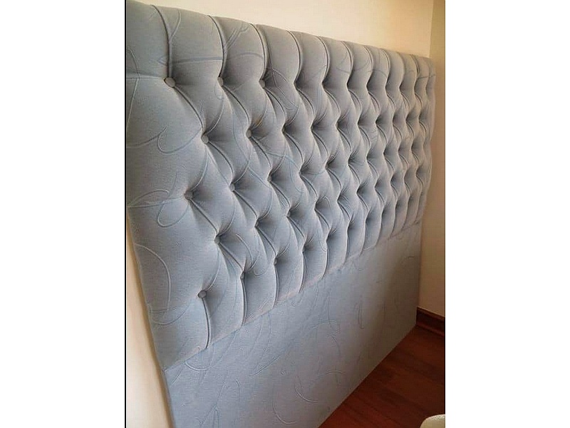 Cabecero estilo capitone en color gris.
