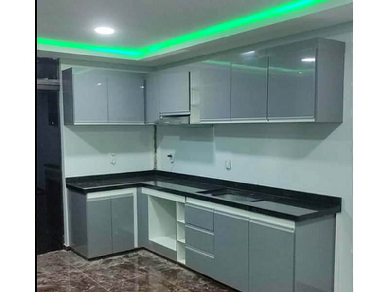 Cocina integral en color gris.