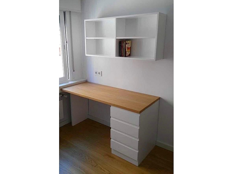 Escritorio mas estantería de color blanco.