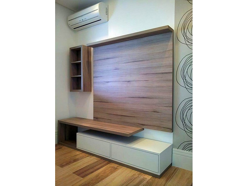 Mueble de televisión color caoba.
