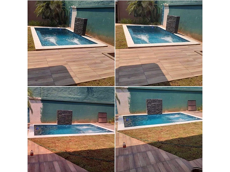 Piscina culminada con todos los accesorios y una cascada opcional.