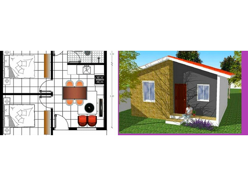 Este proyecto contiene: 2 Dormitorios, Sala, Cocina, Comedor, 1 Baño, Hall de acceso.