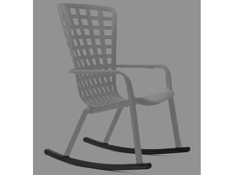Folio Rocking es el relajante y estiloso sillón de balancín para outdoor realizado en resina de fibra de vidrio, perforado con un motivo de cuadros y acabado mate.
