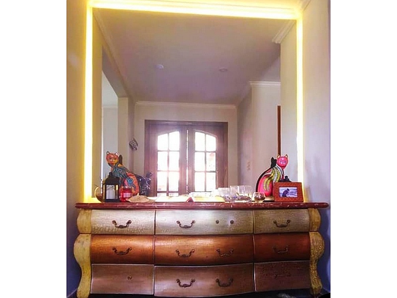 Recibidor con espejo flotante y luces Led, le damos un toque de modernidad.
