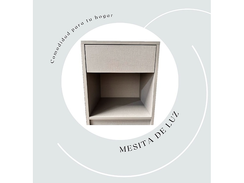 Mesita de luz con un diseño industrial que combina metal y madera, perfecta para añadir un toque urbano a la decoración del dormitorio.