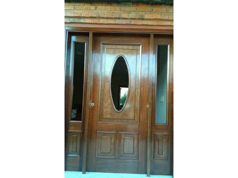 Puerta de madera con un estilo moderno, ideal para hogares contemporáneos que buscan calidez y elegancia.