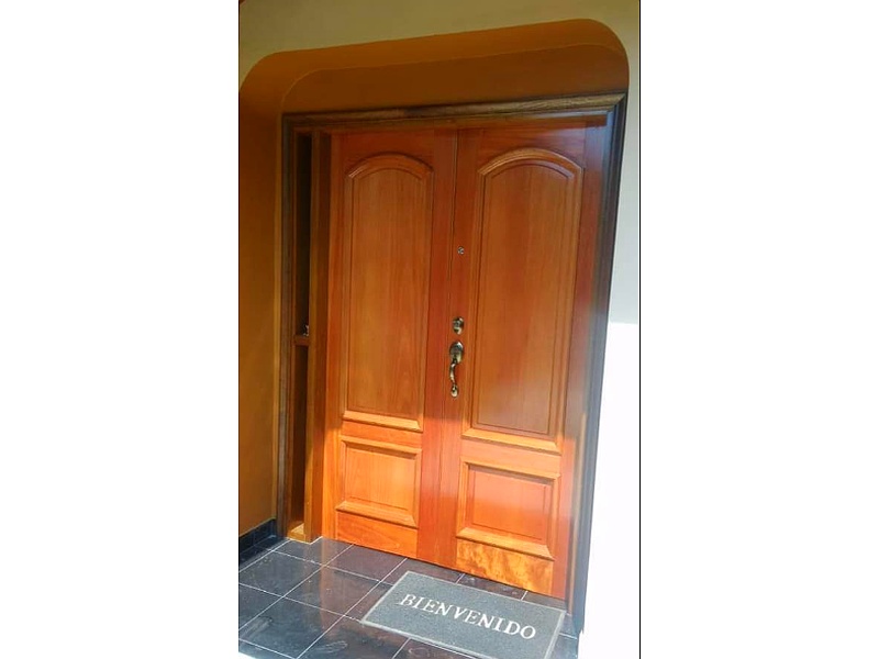 Puerta de madera con acabado rústico, diseñada para crear un ambiente cálido y natural en cualquier espacio.