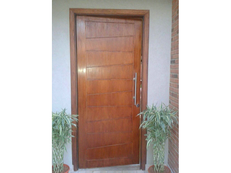Puerta de madera robusta, ideal para interiores o exteriores, ofreciendo durabilidad y diseño clásico.